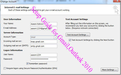 Now Outlook should be able to detect all the proper settings for you and configure Gmail with the correct incoming and outgoing settings. You should get a Microsoft Outlook test message in your Gmail account